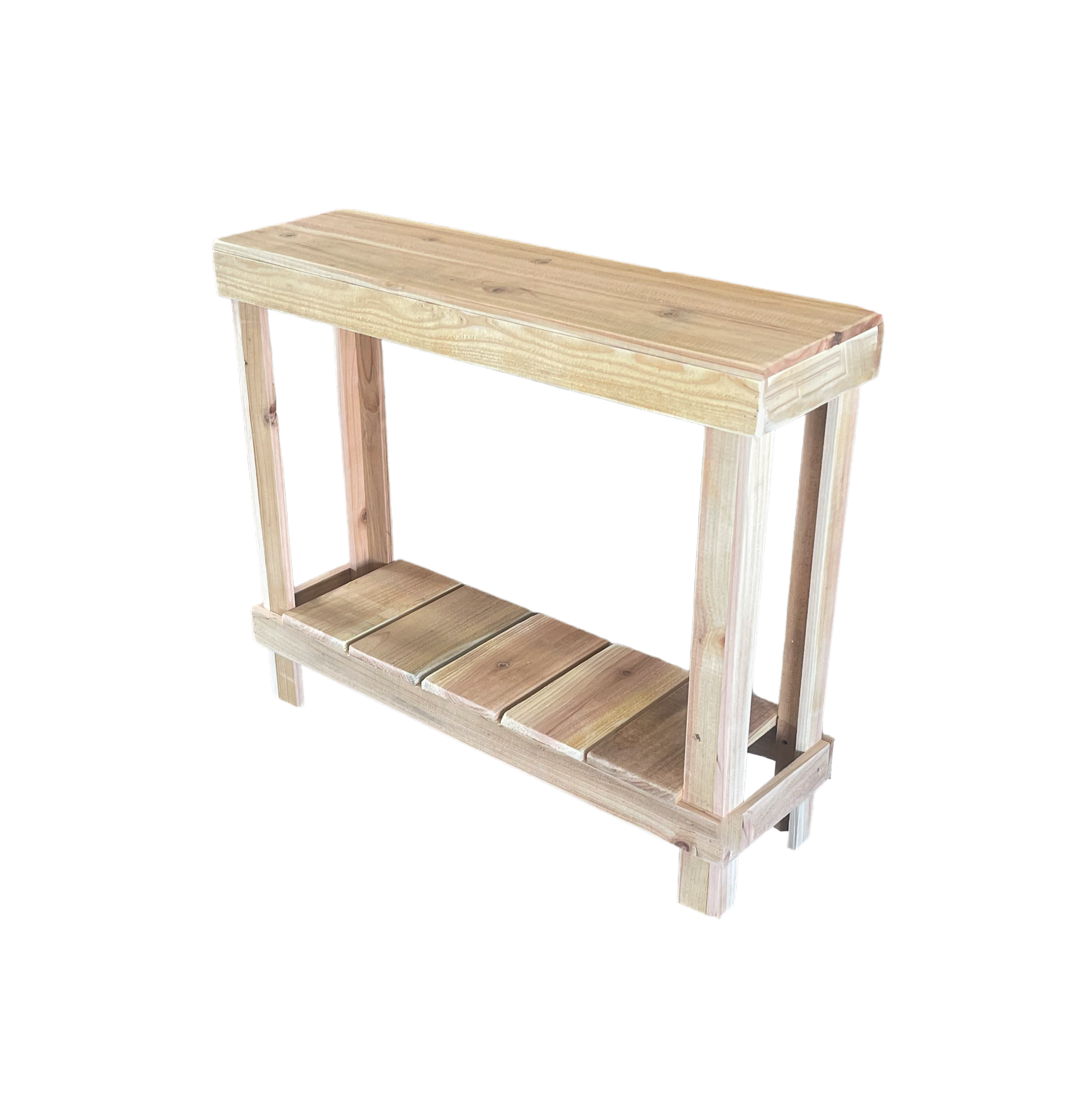 This compact table is ideally sized for entryways or sitting snugly behind your sofa. Its sturdy construction ensures durability and longevity, while the natural wood finish highlights the unique grain and texture of the wood, adding character to your space.